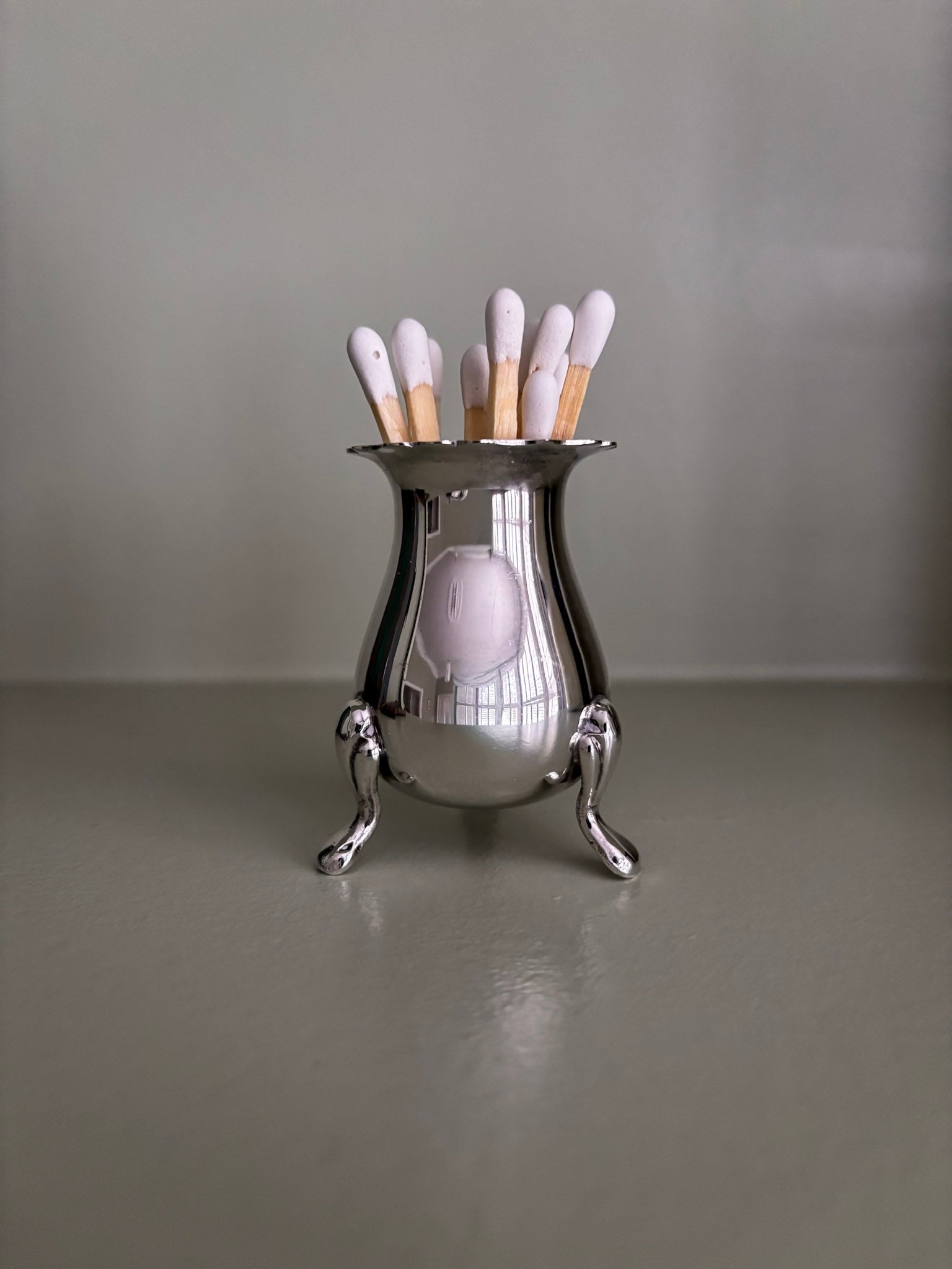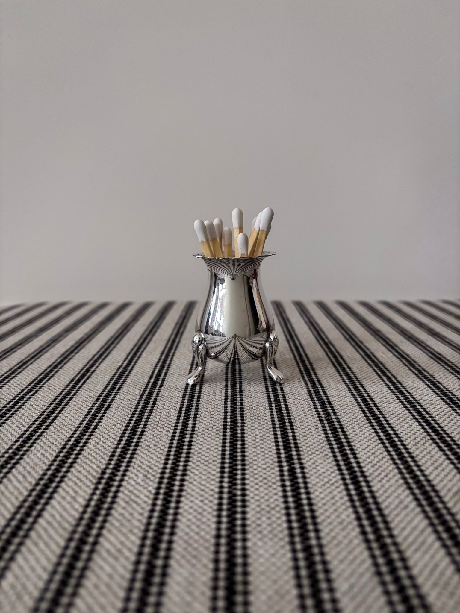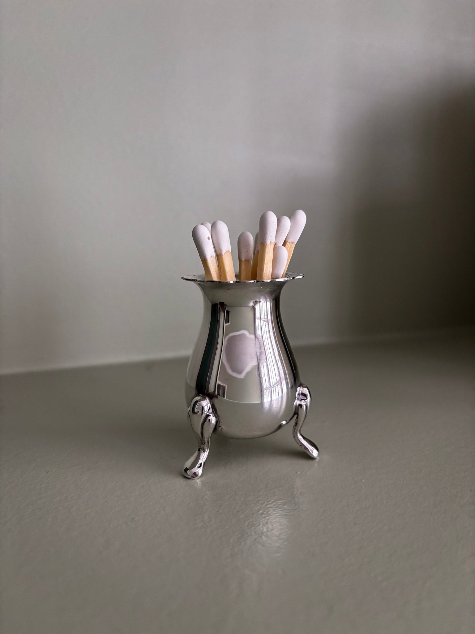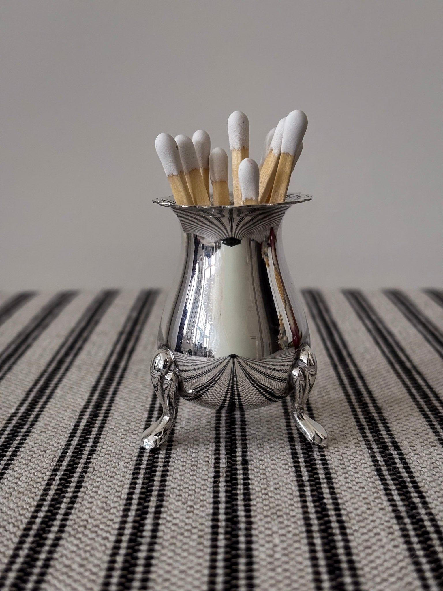 A beautifully shaped vintage silver-plated footed vessel, reimagined as an elevated matchstick holder.